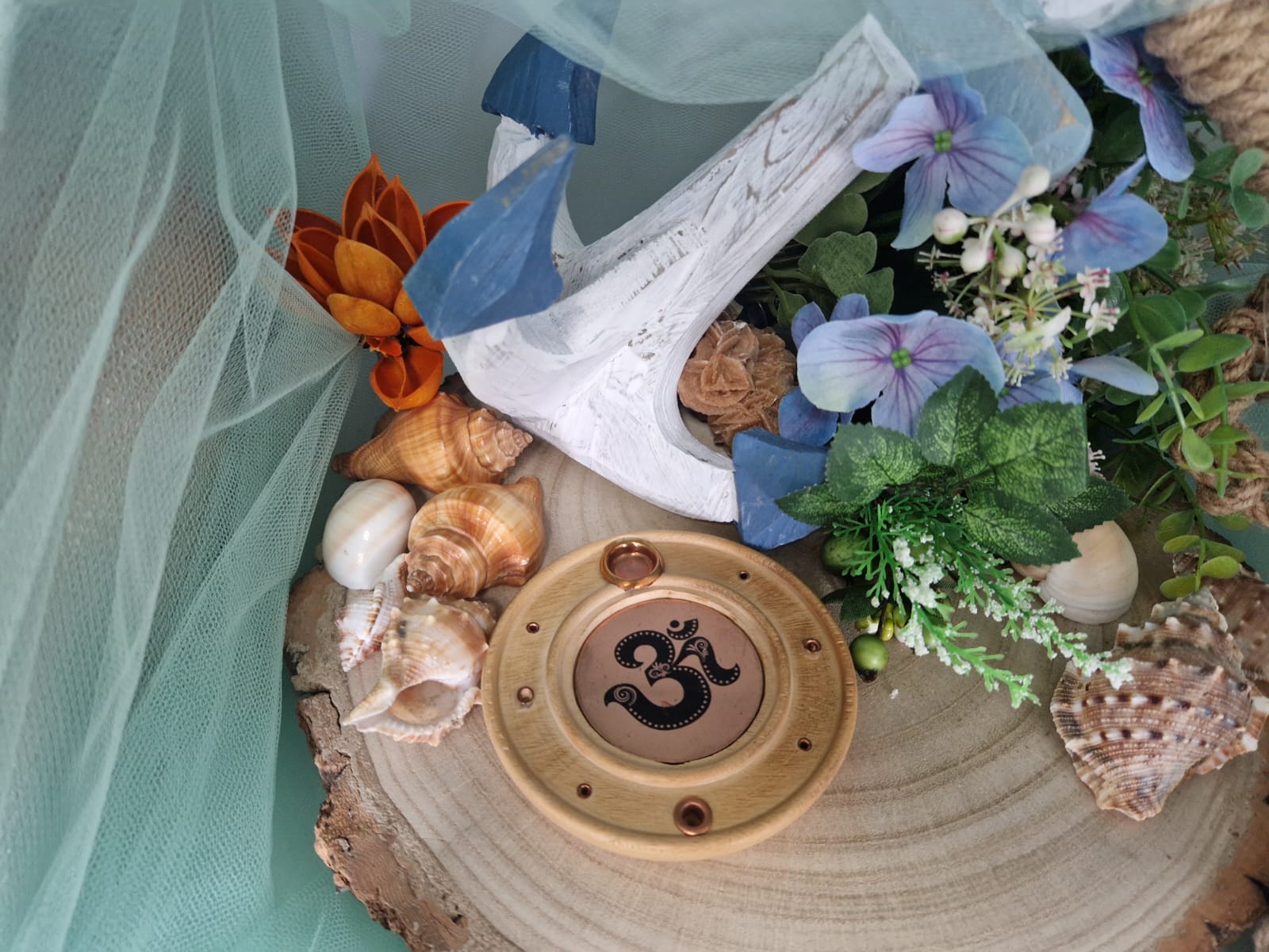 Brucia incenso in legno con inciso simbolo OM per coni e stick