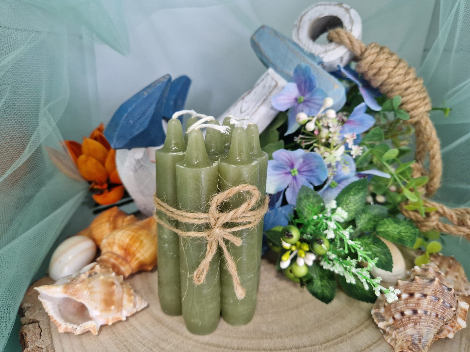 Candela per rituali alta 11 cm verde muschio.