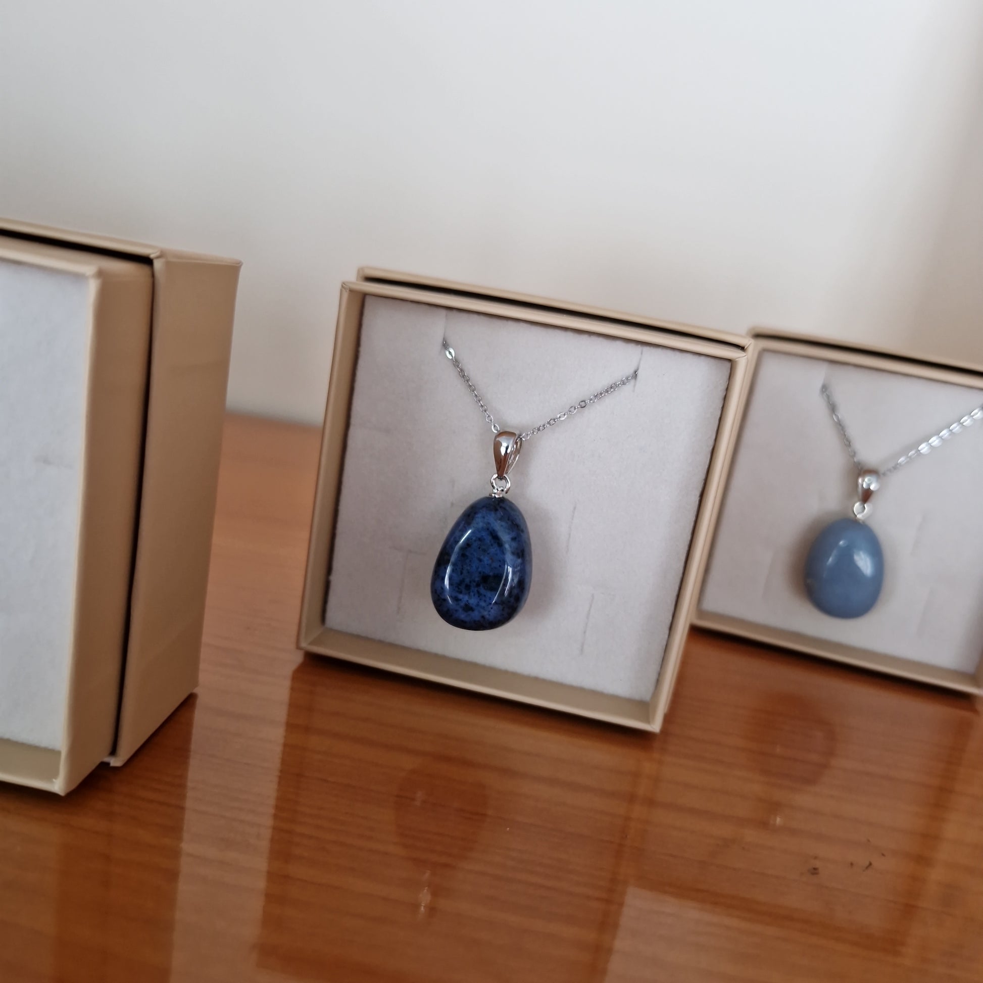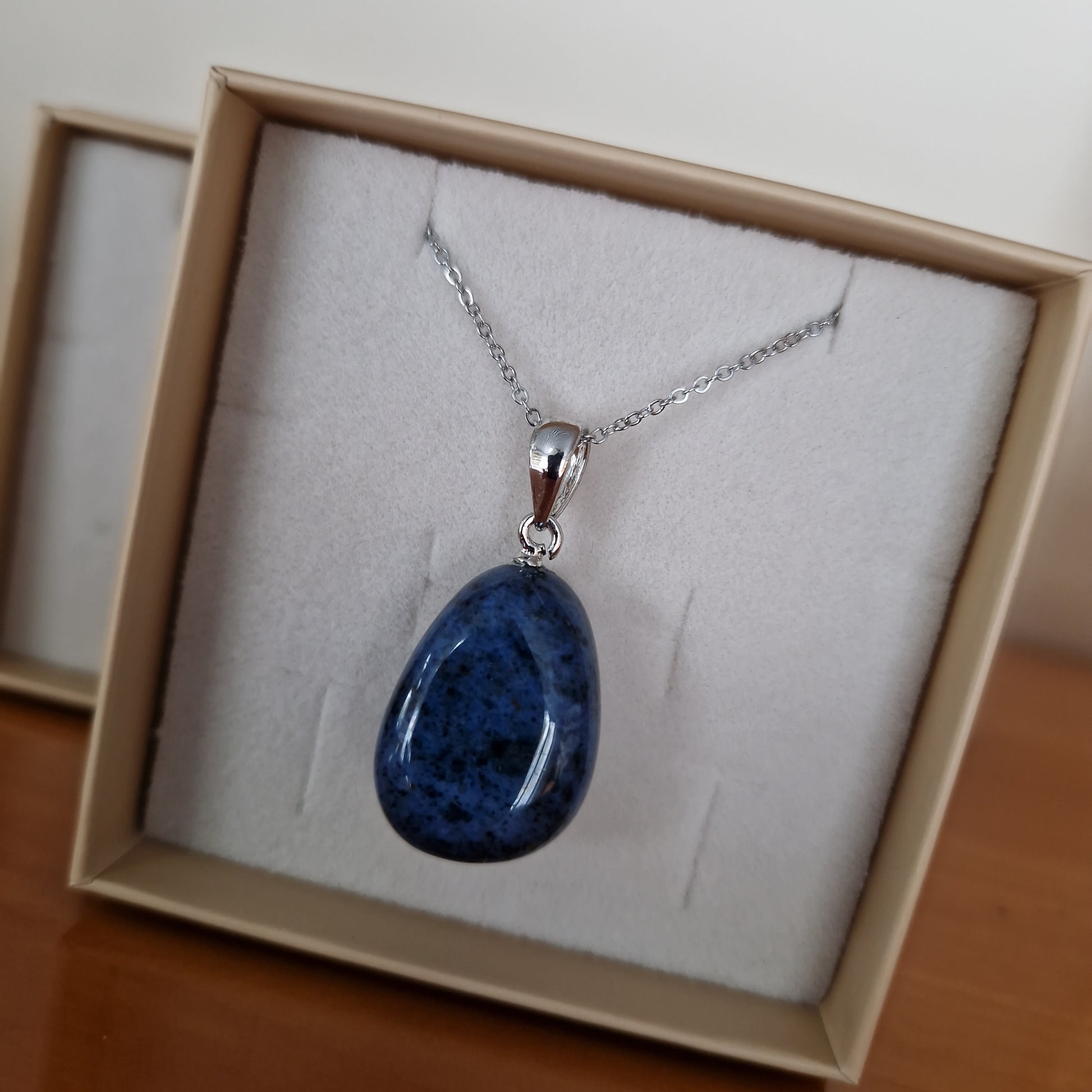 Ciondolo in pietra naturale dumortierite completo di catenina in acciaio.