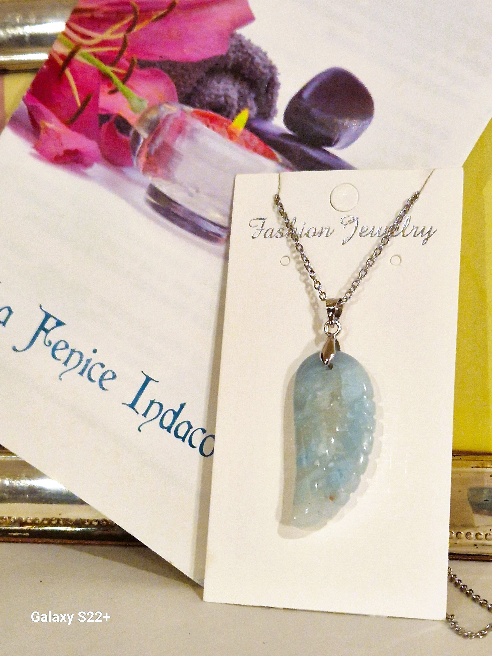 Ciondolo ala di angelo in amazzonite completo di catenina in acciaio.