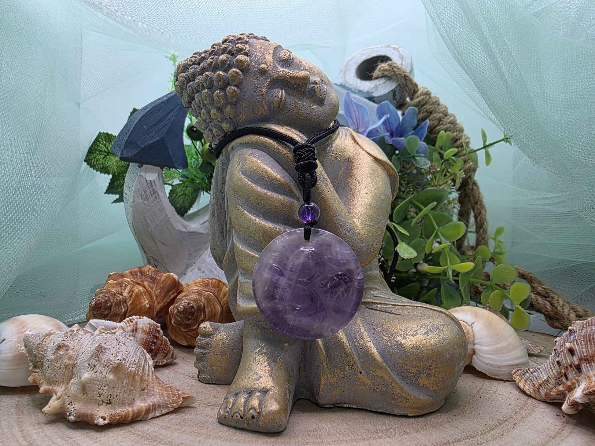Ciondolo in pietra naturale con inciso il simbolo Ohm con cordino in cotone.