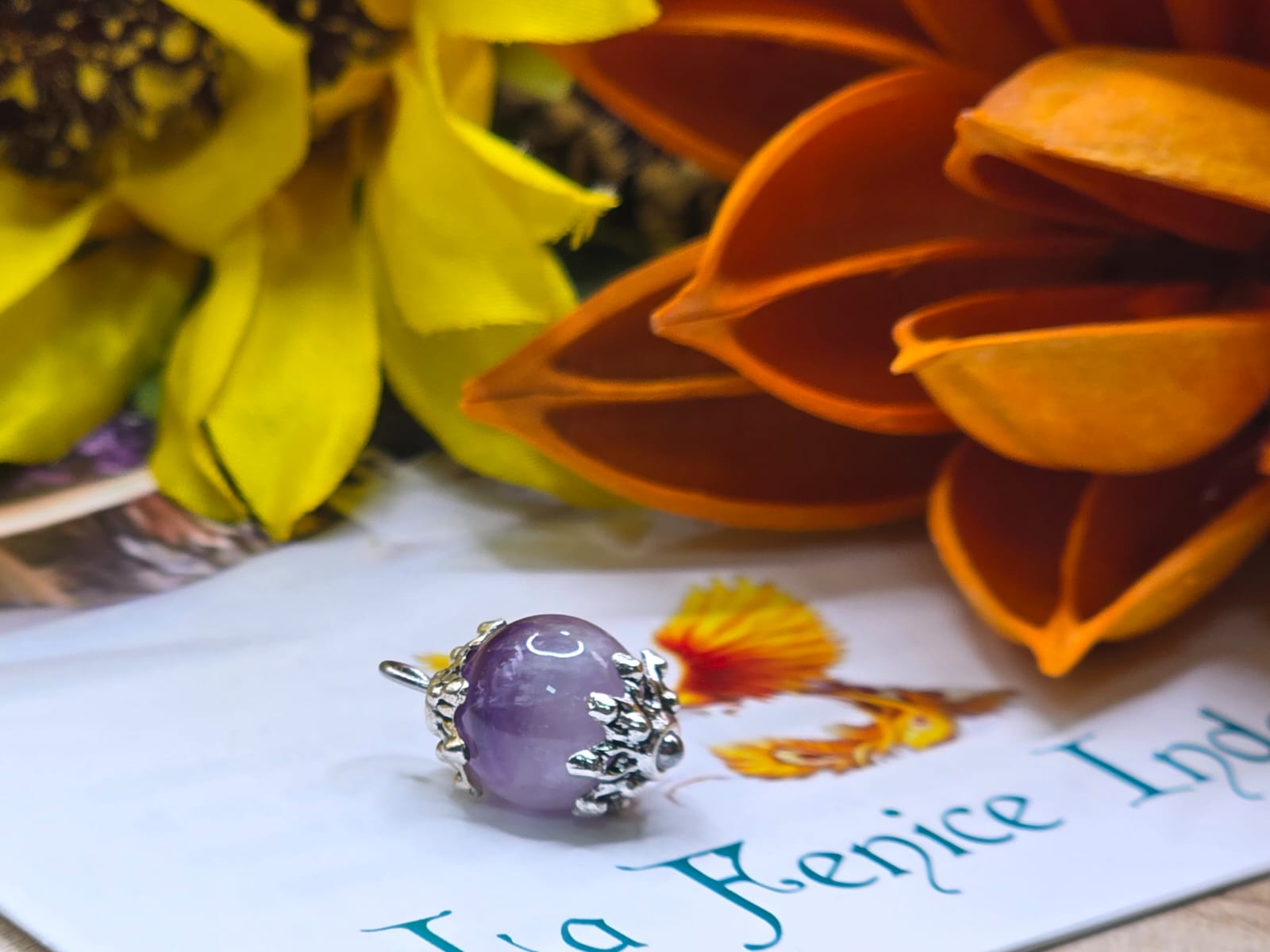 Ciondolo portafortuna 'Su Coccu' per augurare a chi lo riceve protezione e la possibilità di realizzare i propri desideri. Realizzato con pietre a sfera 10/12 mm. ametista completo di catena in acciaio.