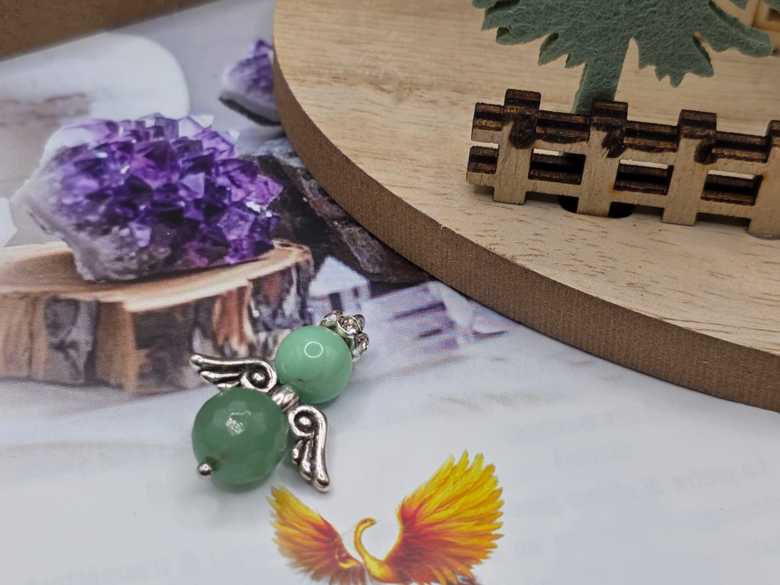 Ciondolo angelo Avventurina e Crisoprasio pietra naturale