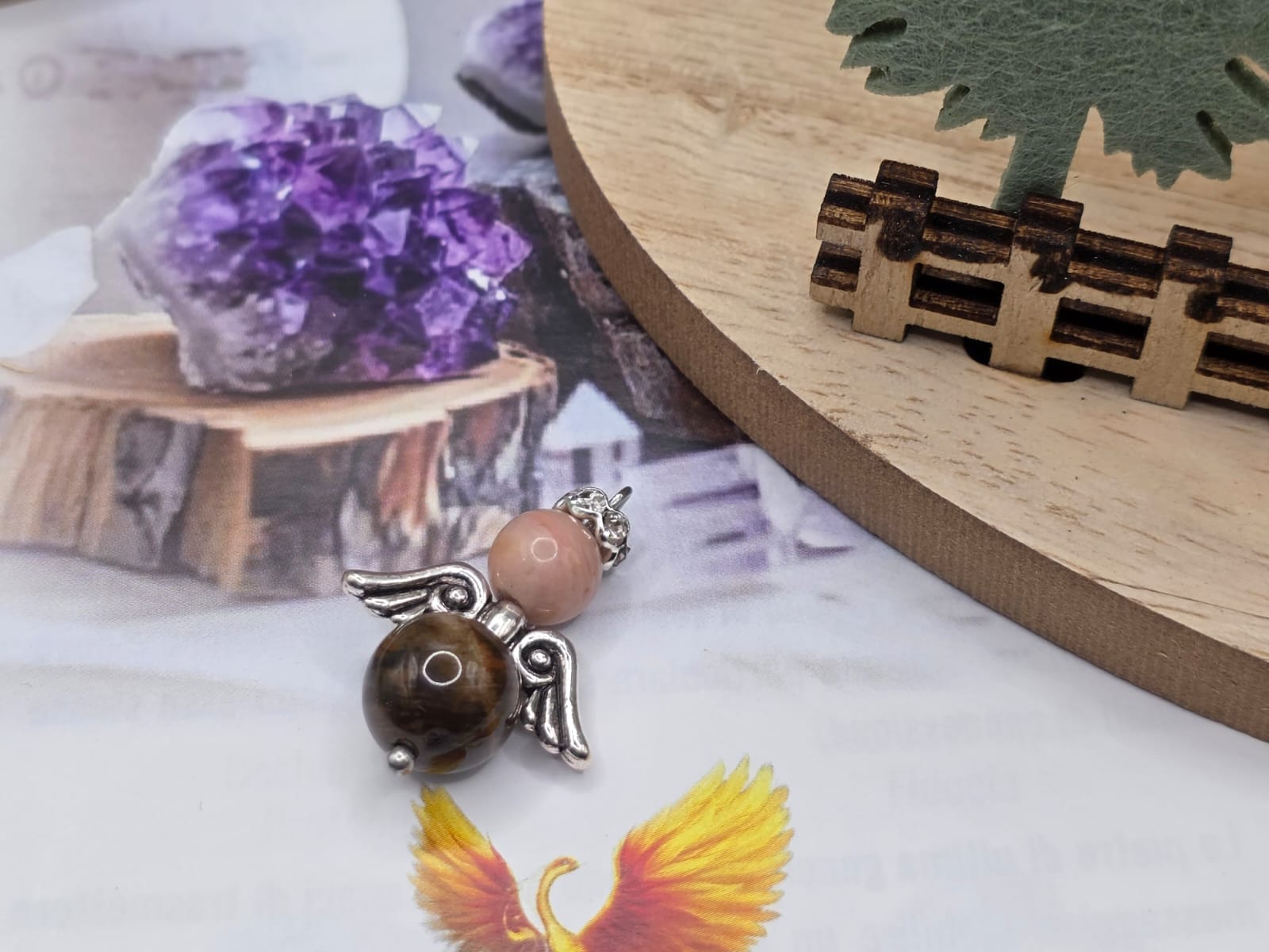 Ciondolo angelo Pietra di luna e Legno fossile naturale