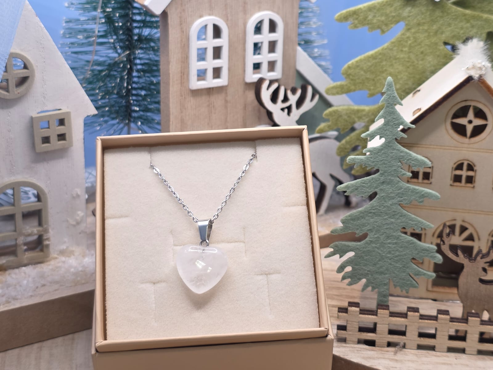Ciondolo cuoricino Quarzo Ialino completo di catenina