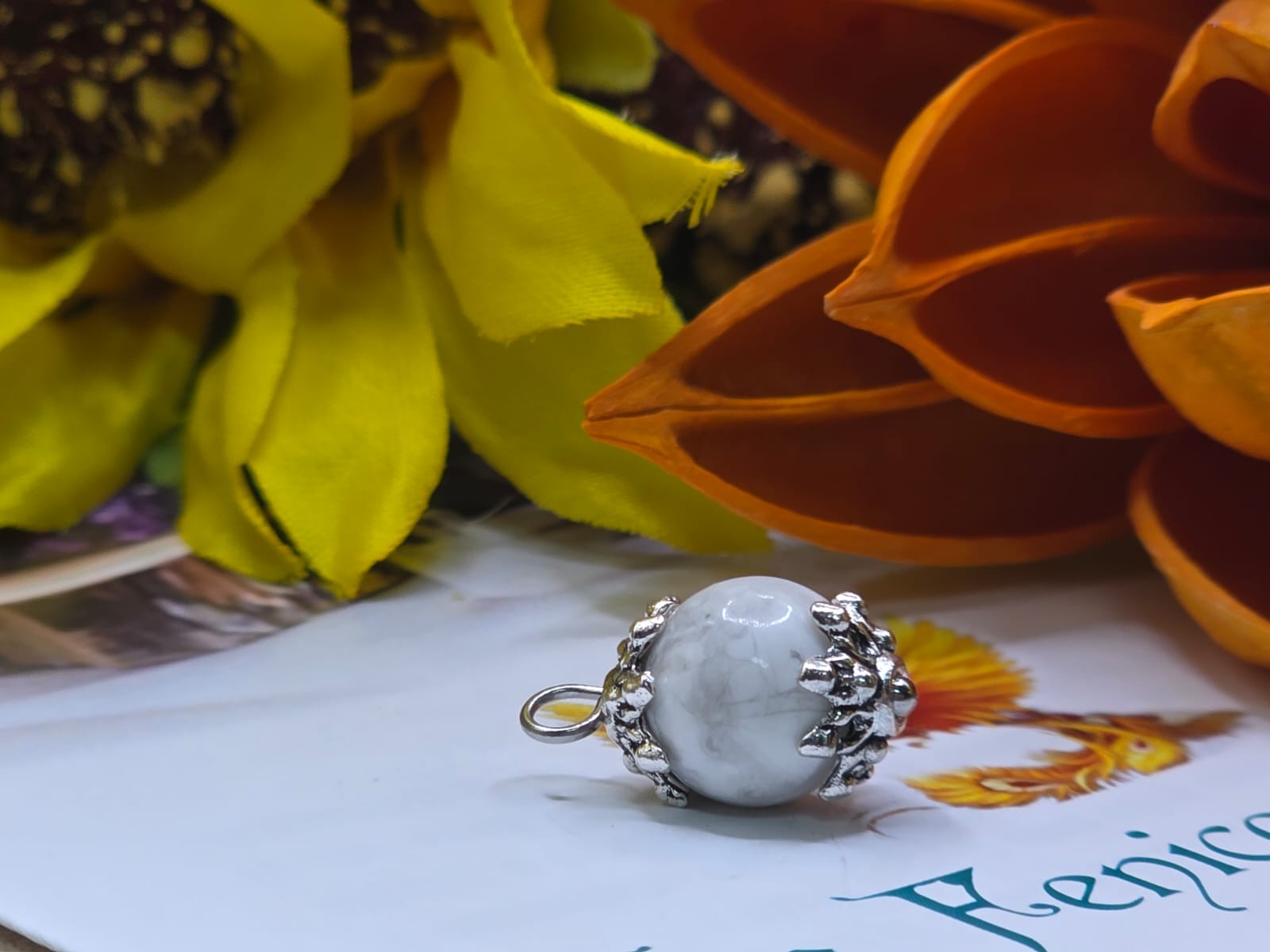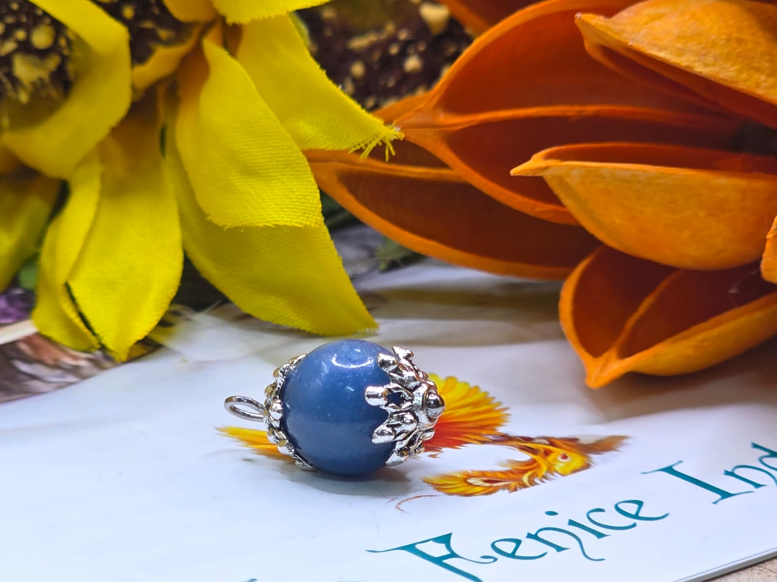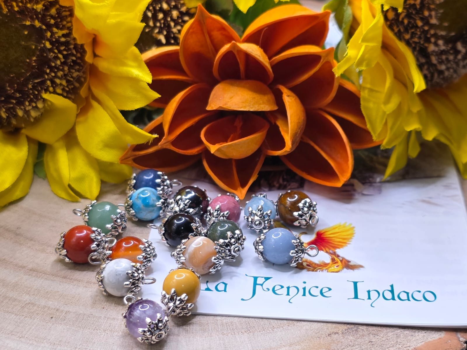 Realizzato con pietre a sfera 10/12 mm. completo di catena in acciaio.