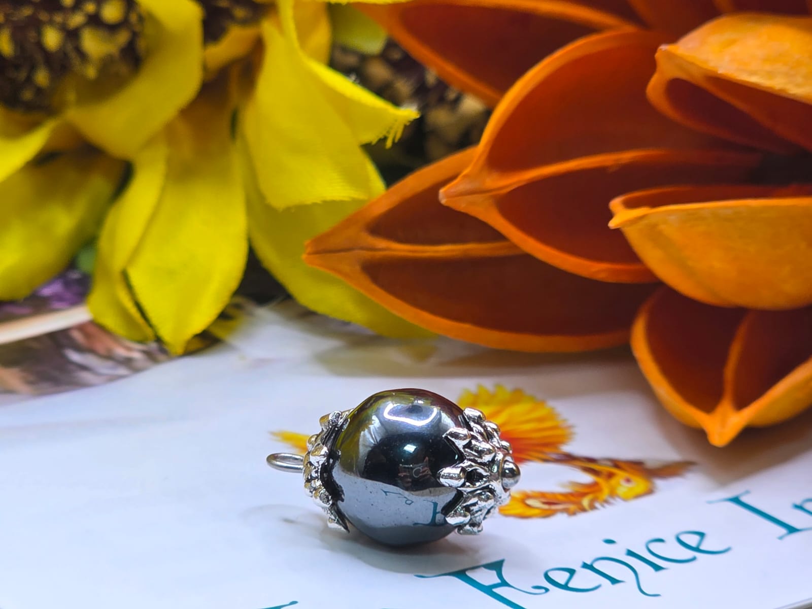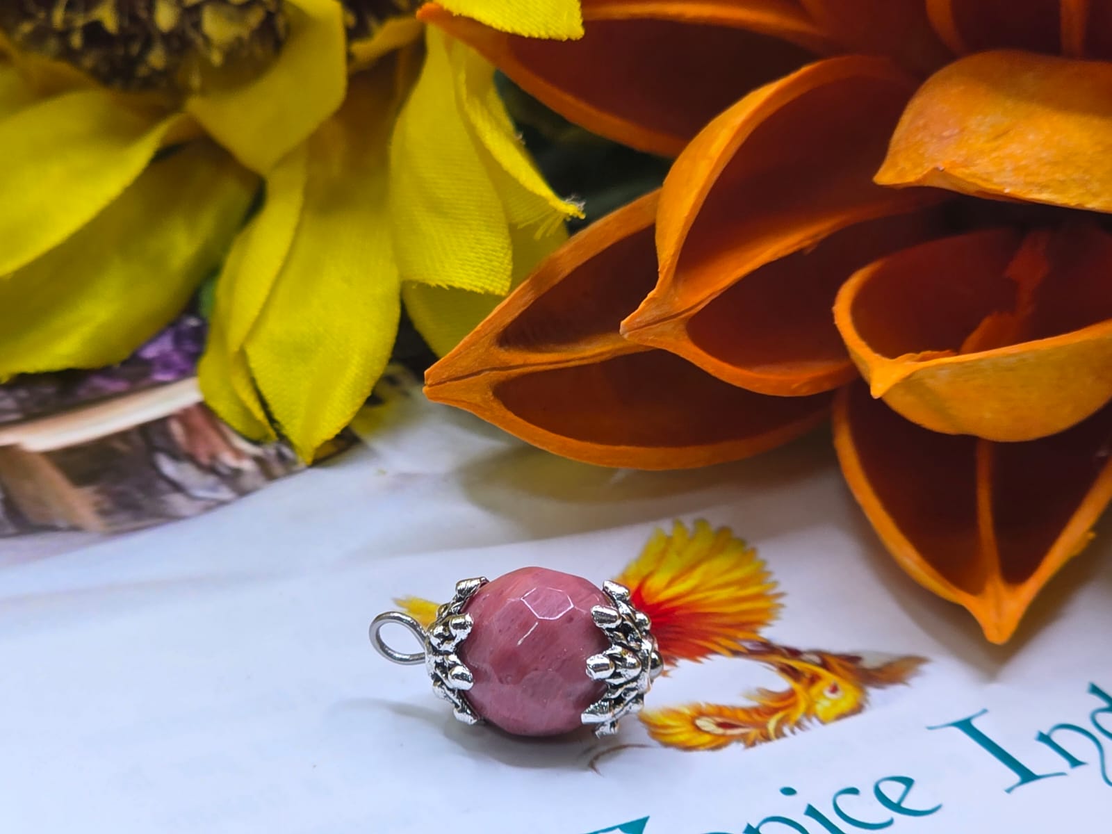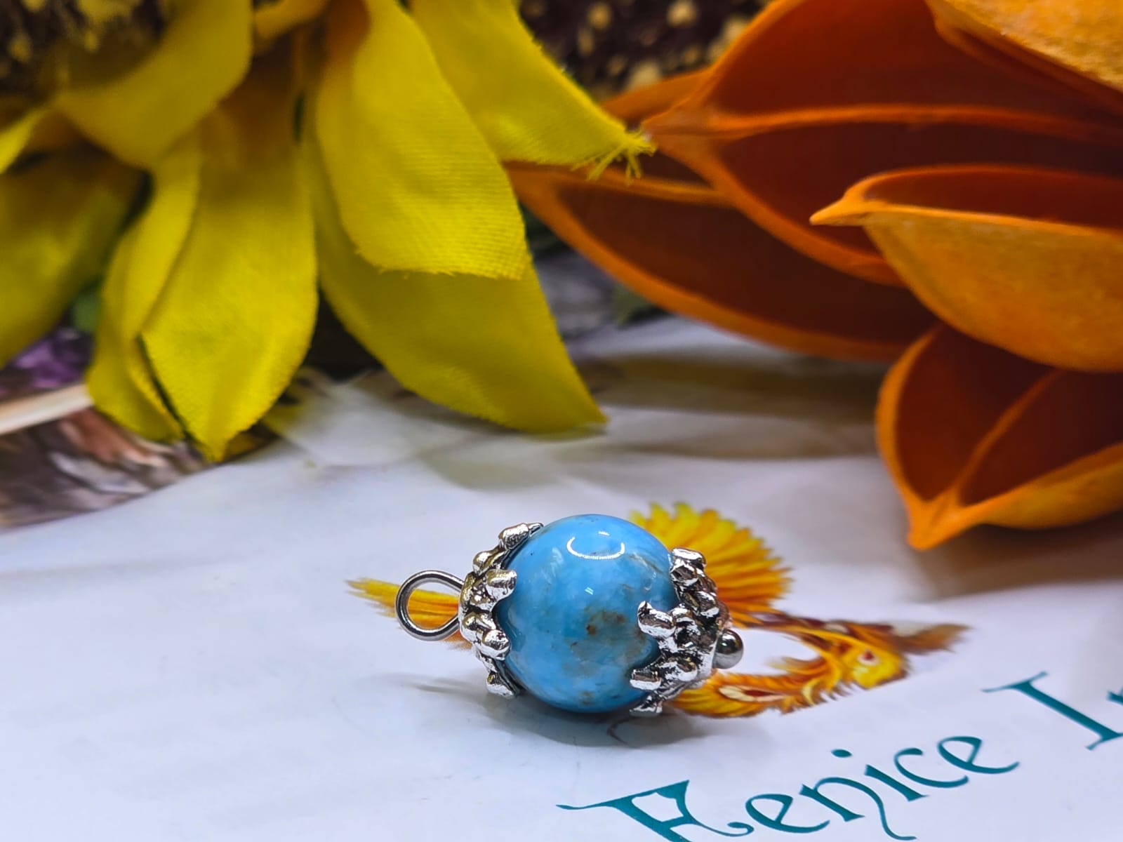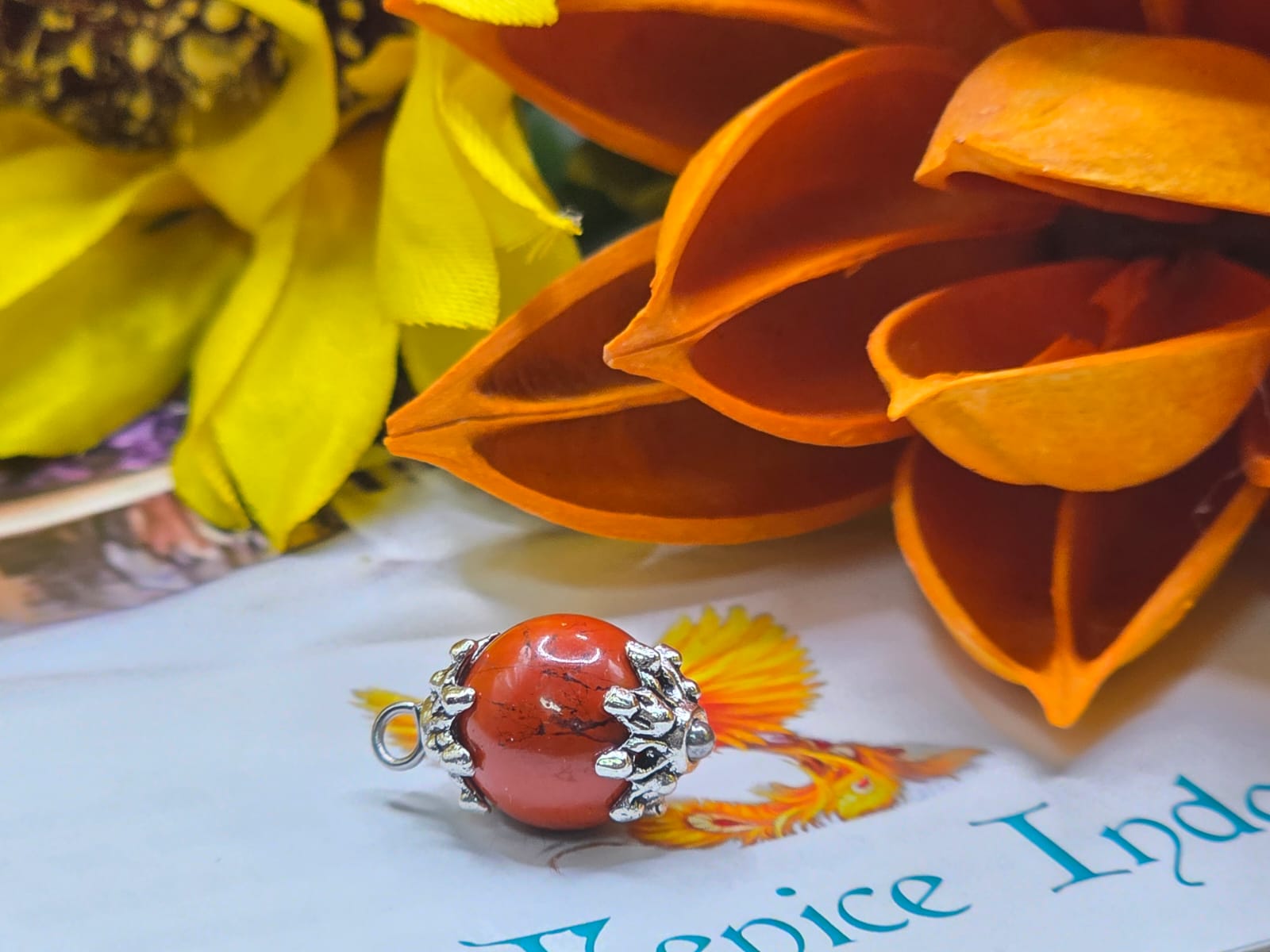 Realizzato con pietre a sfera 10/12 mm. completo di catena in acciaio.