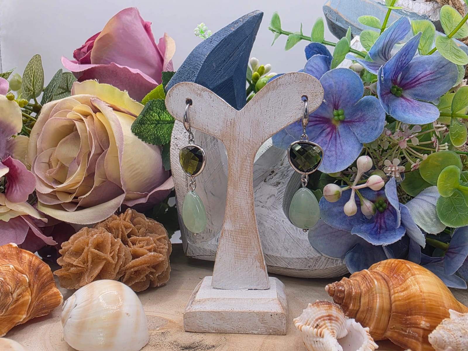 Orecchini realizzati con piastra di vetro sfaccettato e Avventurina Verde naturale con montatura in acciaio.